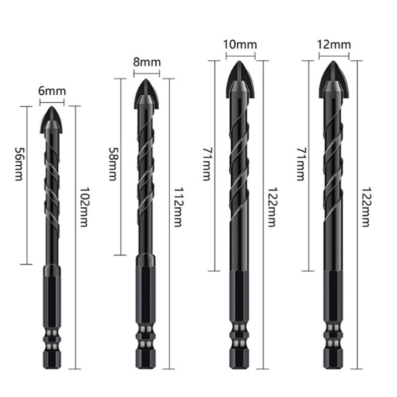 A csomag tartalma: 1/5/10*4 élű keresztcsempe fúró, hatlapos szárral