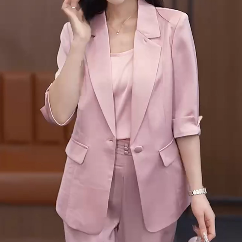 MINDEN ĂVSZAKBAN VISELHETĆ â KivĂĄlĂł minĆsĂ©gƱ anyagokbĂłl kĂ©szĂŒlt, ez a szett kĂ©nyelmet biztosĂt a melegebb hĂłnapokban, miközben a hƱvösebb Ă©vszakokban is rĂ©teges viseletre alkalmas. A rövid ujjĂș blĂ©zer modern hangulatot kölcsönöz, Ăgy nyĂĄri talĂĄlkozĂłkrĂłl esti rendezvĂ©nyekre is zökkenĆmentesen ĂĄtvĂĄlthatĂł, egĂ©sz Ă©vben hasznos darabja lesz a ruhatĂĄrĂĄnak.