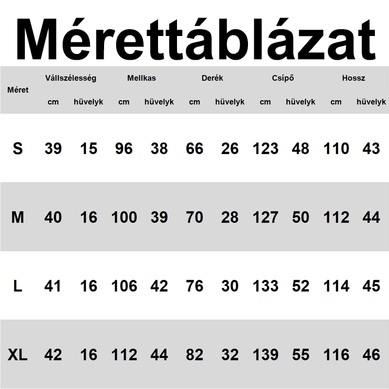 Kézi mérés miatt 2–3 cm eltérés előfordulhat. Vásárlás előtt kérjük, ellenőrizze a mérettáblázatot!