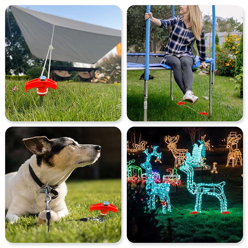 EGYSZERư HASZNĂLAT: Ăgy hĂĄtradĆlhet egy sörrel, miközben nĂ©zi a többi kempingezĆ kĂŒzdelmĂ©t. Egy akkumulĂĄtoros fĂșrĂłgĂ©p vagy ĂŒtvecsavarozĂł segĂtsĂ©gĂ©vel ezek a könnyen hasznĂĄlhatĂł karĂłk mĂĄsodpercek alatt rögzĂtik sĂĄtrait, elĆtetĆjĂ©t, pavilonjĂĄt, napellenzĆjĂ©t, kifeszĂtĆköteleit vagy ponyvĂĄit a talajhoz.