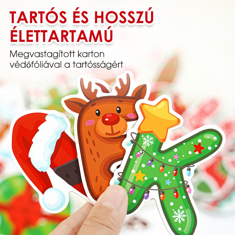 Ünnepi tanulás játékosan – Ez a készlet vidám karácsonyi motívumokat ötvöz a színes betűkkel és számokkal, így a tanulás igazán szórakoztatóvá válik az ünnepi időszakban. A gyerekek játékosan fejleszthetik olvasási és számolási készségeiket, miközben a házat díszítik, és közben kreativitásukat és gondolkodásukat is serkentik.