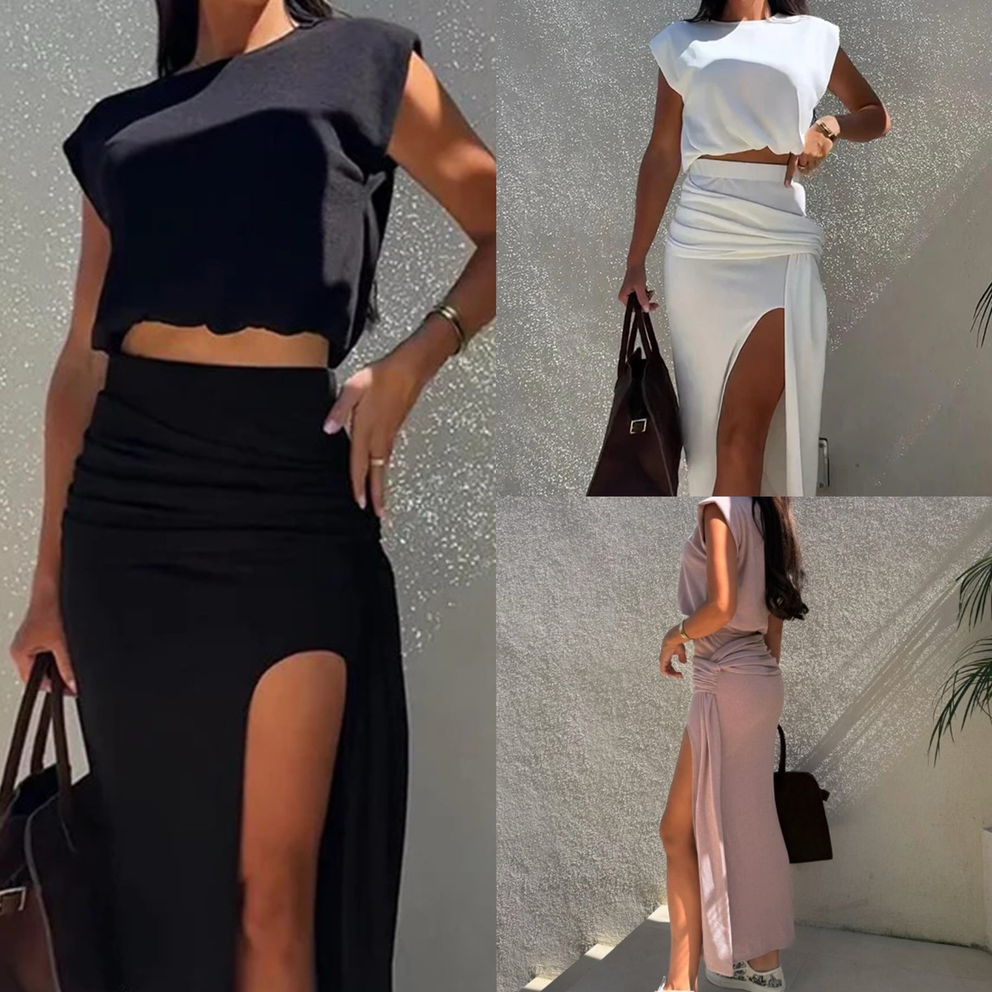 A csomag tartalmazza: A csomagban talĂĄlhatĂł a következĆ termĂ©kek: 1* NĆi elegĂĄns felsĆ  magas hasĂtott szoknya szett