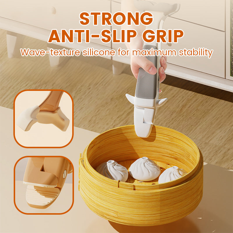 KETTŐS FUNKCIONÁLISÁG: A kettős rendeltetésű kialakítás egy tálat megragadó fejjel és egy tányért megragadó farokkal rendelkezik, így egyetlen, kényelmes eszközzel biztonságosan kezelheti a legkülönbözőbb méretű és formájú edényeket.