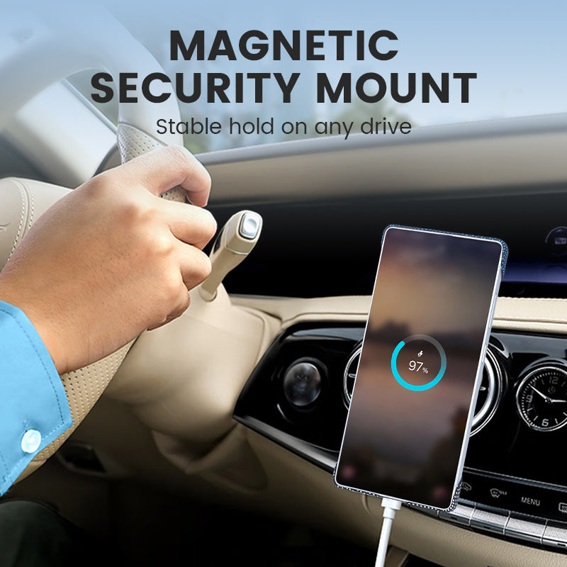 MÁGNESES BIZTONSÁG: Élvezze a páratlan stabilitást útközben. Integrált, nagy szilárdságú mágnesünk biztonságosan rögzül bármilyen mágneses autós tartóra, így még a legbumposabb utazások vagy autós kirándulások is zökkenőmentessé válnak. Navigáljon magabiztosan és töltse vezeték nélkül készülékét.