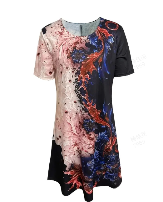 A csomag tartalma: 1 × Női nyári ruha kerek nyakkivágással, rövid ujjú, virágmintás