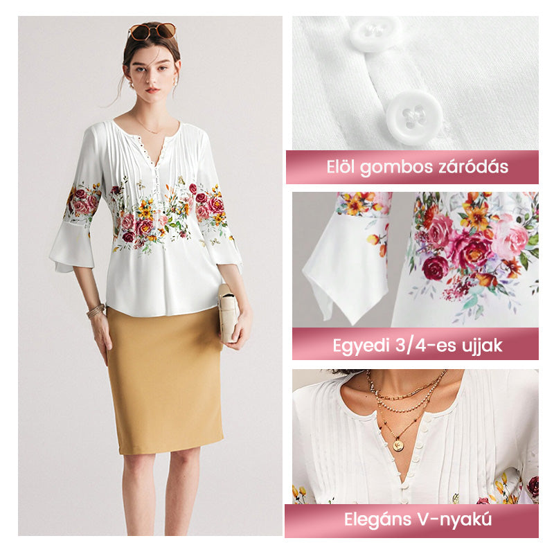Dobd fel alkalmi ruhatĂĄradat a 3/4 ujjĂș, nĆi pliszĂrozott, V-nyakĂș, virĂĄgos, gombos nĆi inggel. Ez a sokoldalĂș Ă©s stĂlusos felsĆ a kĂ©nyelmet Ă©s az eleganciĂĄt ötvözi, Ăgy tökĂ©letes kiegĂ©szĂtĆje a mindennapi összeĂĄllĂtĂĄsoknak.