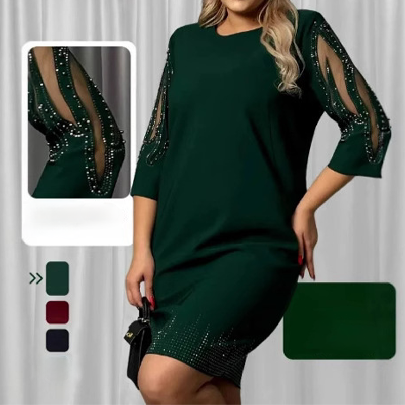 A hétnegyedes ujjú tüll csipke dizájnja drágakő elemeket tartalmaz a finom és figyelemfelkeltő részletek érdekében. Ez a gyönyörű részlet túlmutat az alkalmi viseleten.