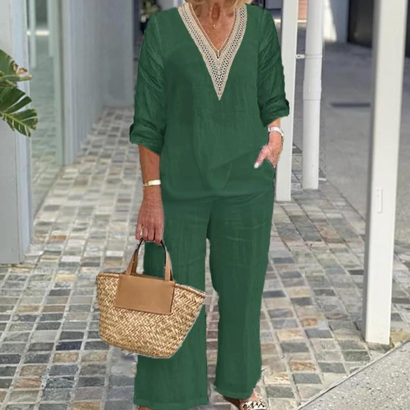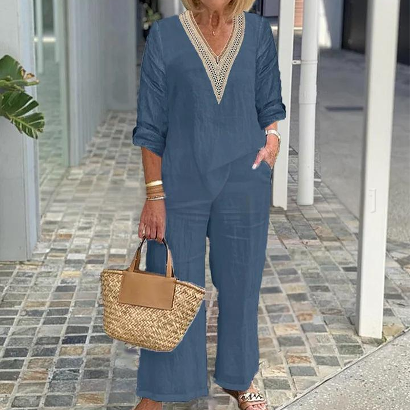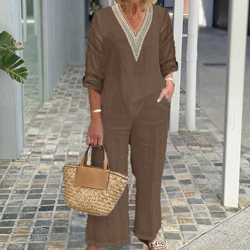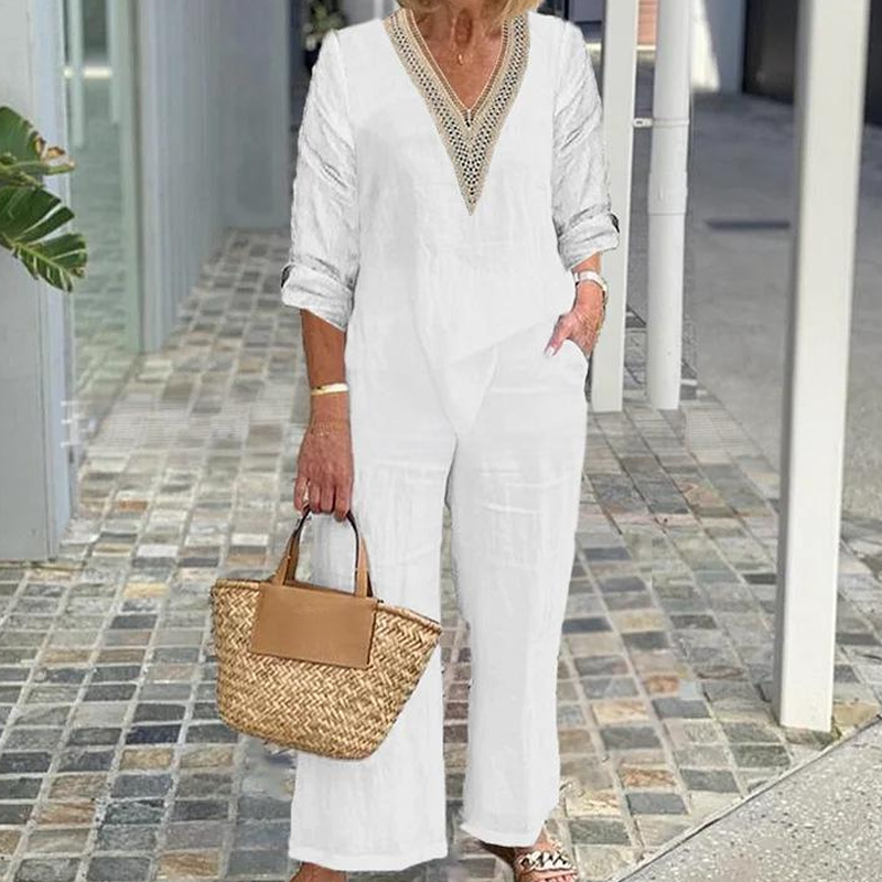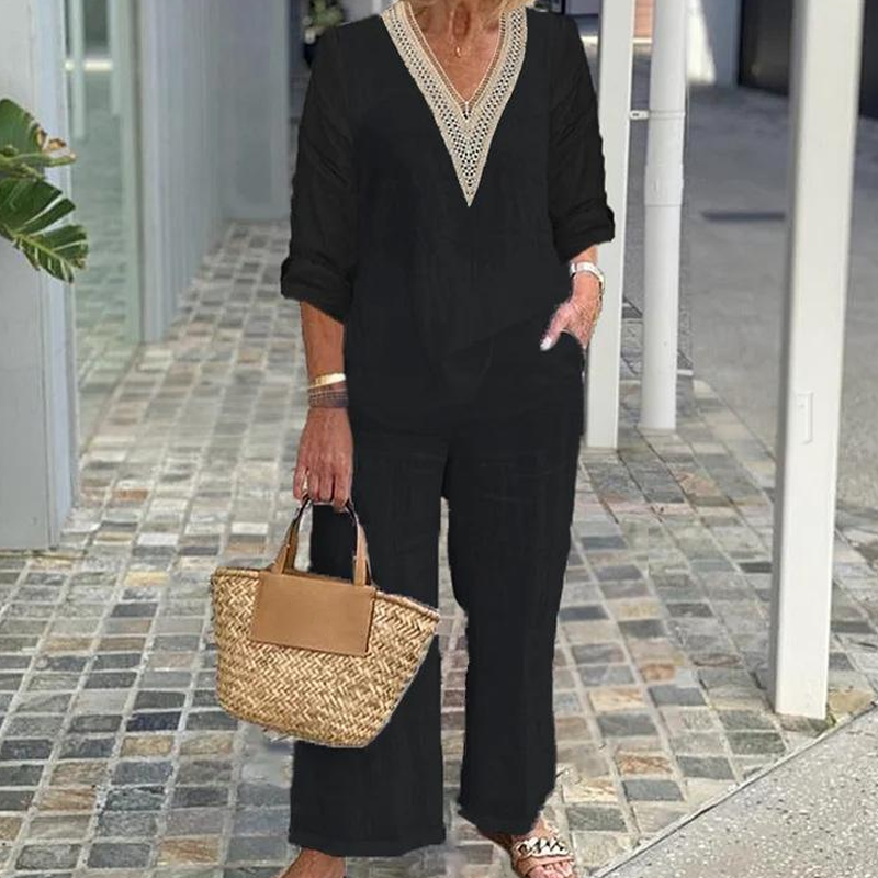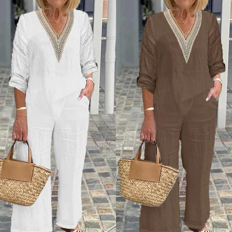 A csomag tartalma: 1* Női V-nyakú felső és széles szárú nadrág
