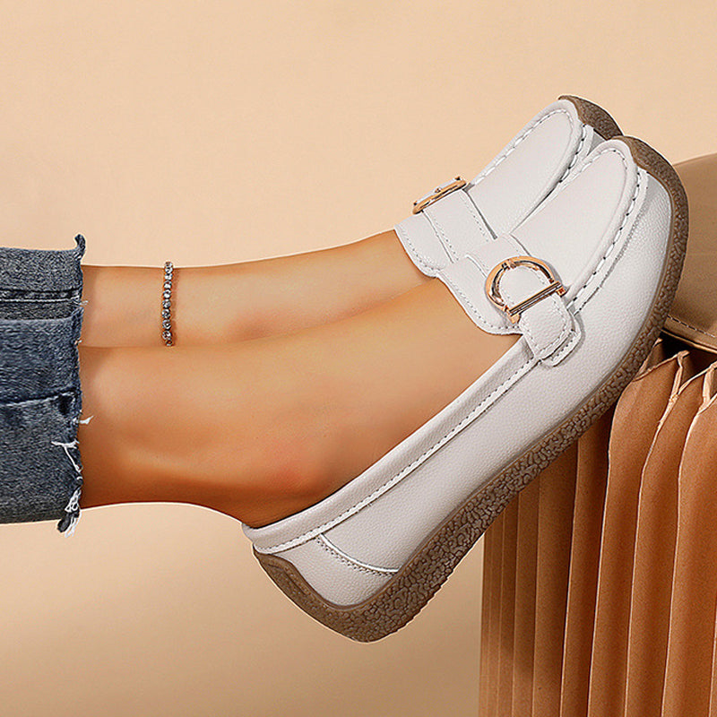 ELEGÁNS TERVEZÉS- Elegáns, lekerekített orrú és minimalista csatos kialakítással, ezek a papucsok zökkenőmentesen ötvözik az alkalmi kényelmet az elegáns kifinomultsággal. A könnyű szerkezet egész napos kényelmet biztosít, miközben megőrzi a szerkezeti stabilitást, így tökéletes választás a könnyed stílushoz, az elegancia megalkuvása nélkül.