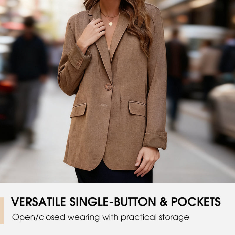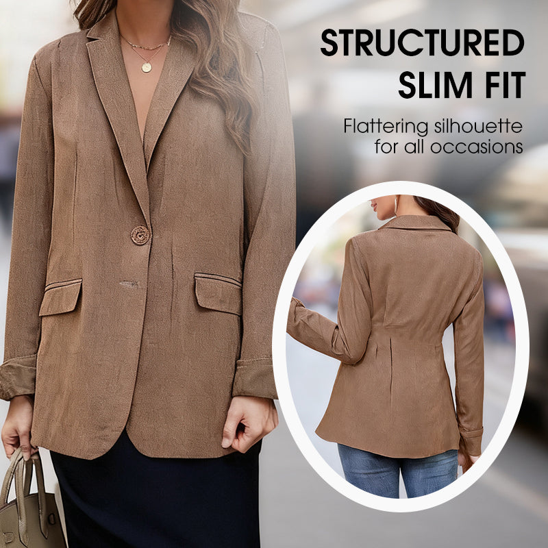 STRUKTURĂLT ĂS KARCSĂ SZILUETT â A nyitott elĂŒlsĆ rĂ©sszel Ă©s hosszĂș ujjĂș, laza nĆi zakĂł precĂzen szabott kialakĂtĂĄsĂĄnak köszönhetĆen kifinomult, elĆnyös sziluettet Ă©s modern, karcsĂș vonalakat kölcsönöz viselĆjĂ©nek. A kialakĂtĂĄs termĂ©szetes esĂ©st Ă©s elegĂĄns megjelenĂ©st biztosĂt, finoman kiemelve a test vonalait anĂ©lkĂŒl, hogy korlĂĄtozĂłnak Ă©rezhetĆ lenne.