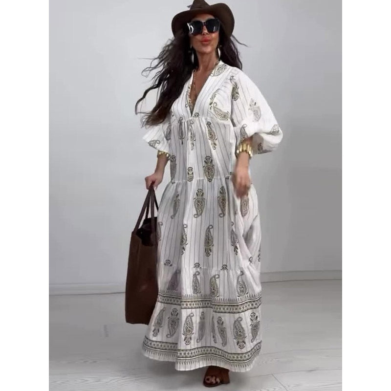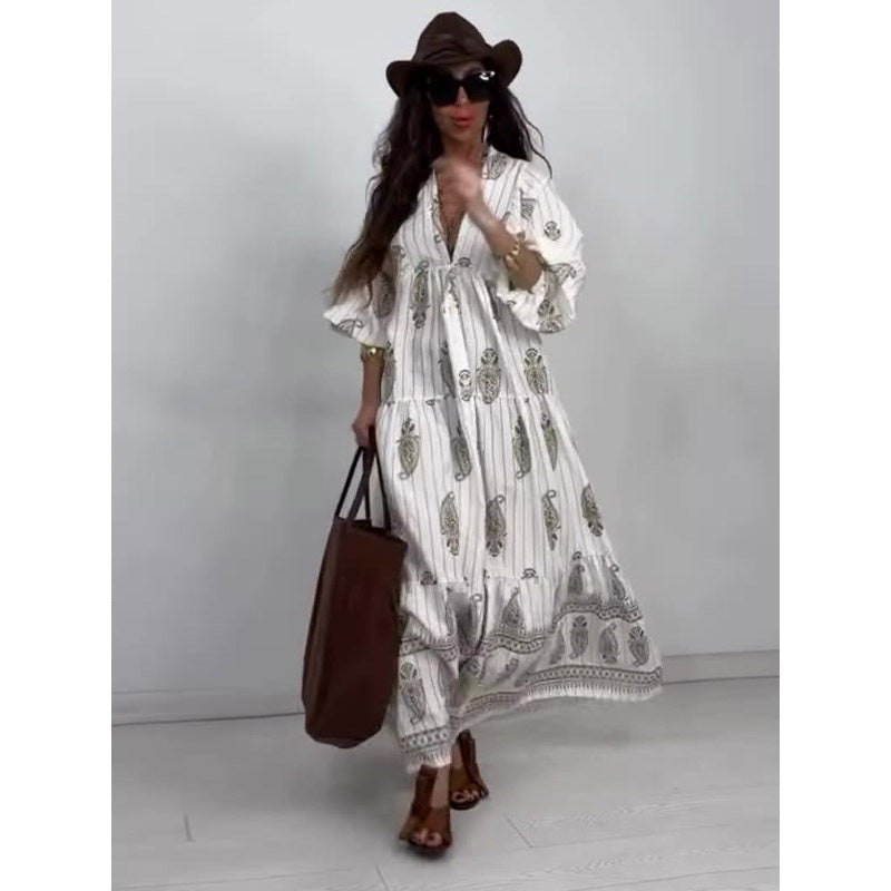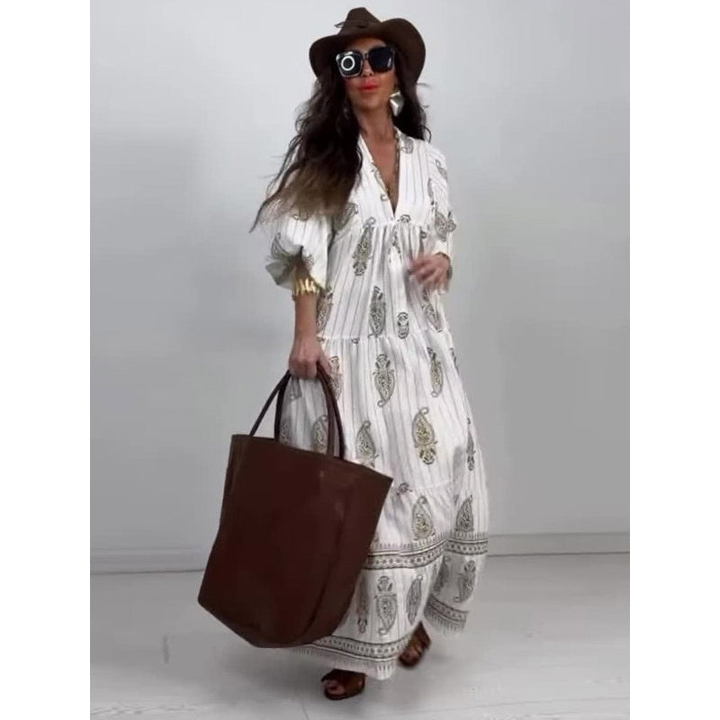 A csomag tartalma: 1*NĆi alkalmi nyomtatott hosszĂș ujjĂș Maxi ruha