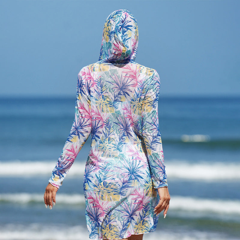 KAPUCNIS TAKARĂ ELĂL NYAKKENDĆVEL: A könnyƱ, hosszĂș ujjĂș takarĂłfelsĆ kĂ©nyelmes elĂŒlsĆ nyakkendĆvel rendelkezik, amely segĂt elrejteni a közĂ©psĆ rĂ©szt, Ă©s extra napvĂ©delmet kĂnĂĄl egy divatos csavarral.