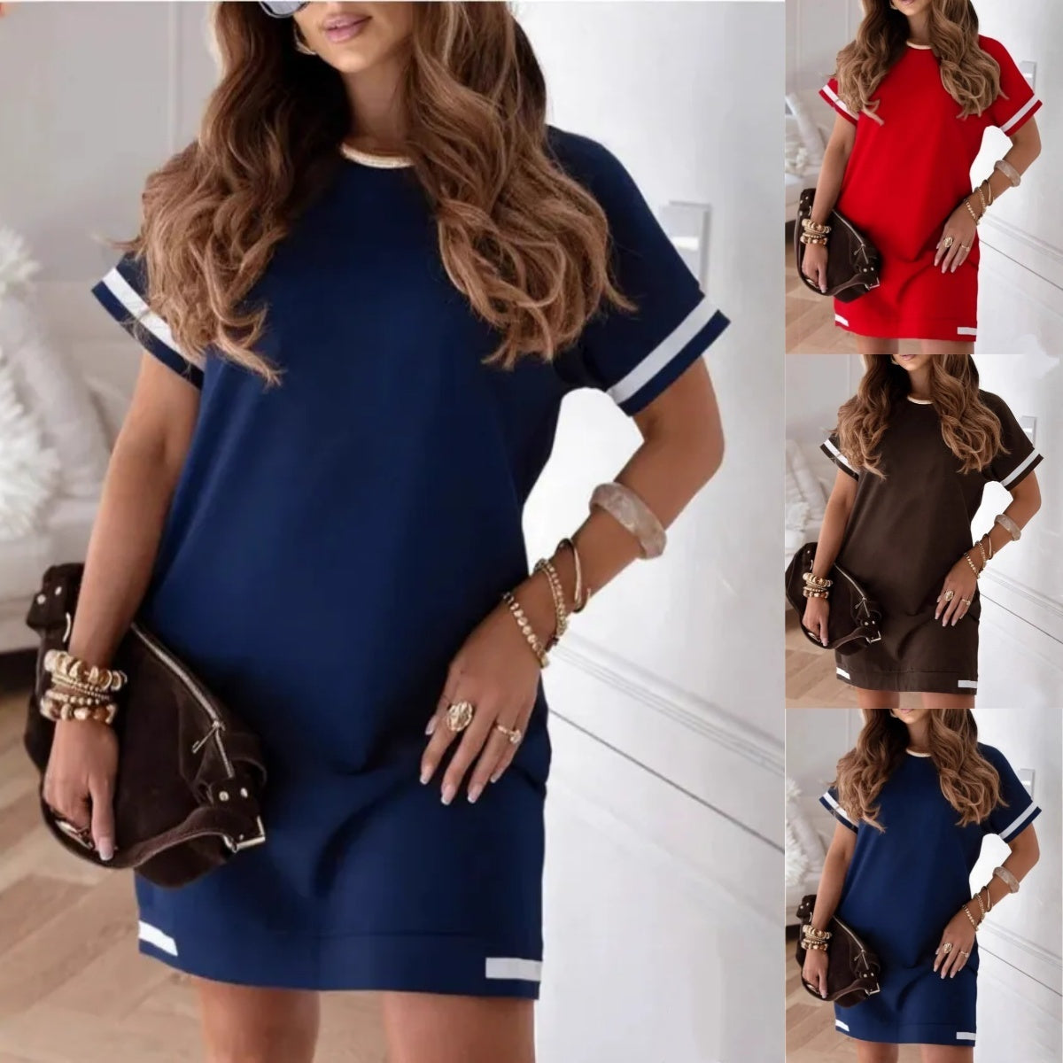 Klasszikus kerek nyakkivágás és rövid ujjak: Ez a ruha időtálló kerek nyakkivágással és rövid ujjakkal rendelkezik, ami hízelgő szabást biztosít, miközben hűvös és kényelmes a melegebb időben.