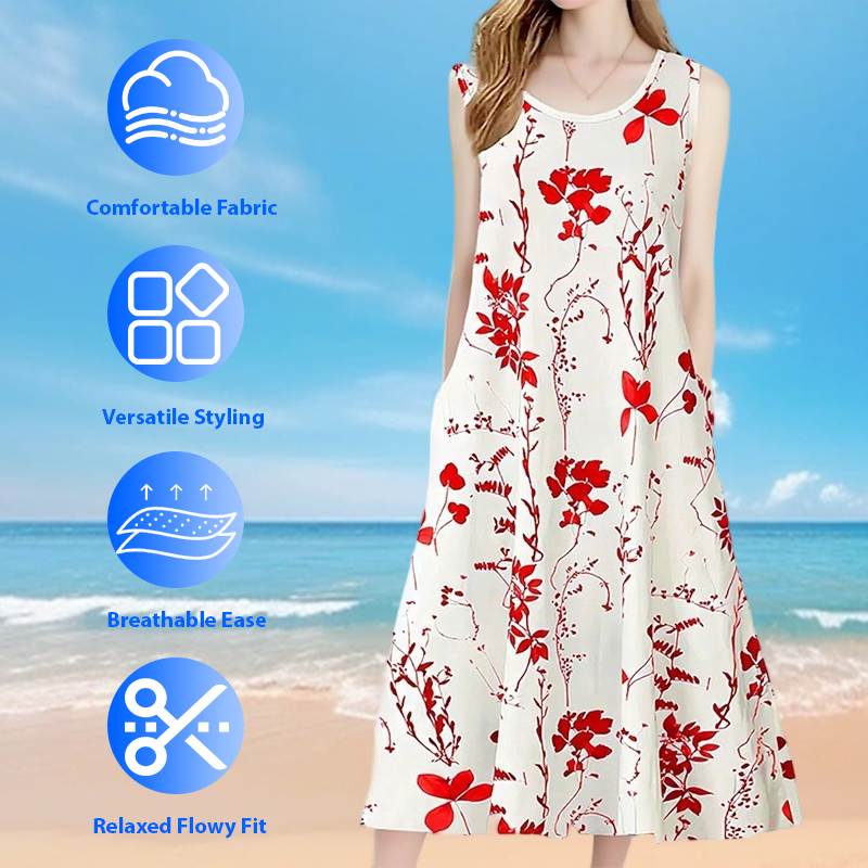 KELLEMES, UJJÁTALAN KÉNYELEM - Az ujjatlan kivágás és a kiváló minőségű anyag meleg időben is hűvös és kényelmes viseletet biztosít. Gyönyörűen simul minden testvonalhoz, kényelmet és magabiztosságot nyújtva minden testalkatú hölgynek, a nap bármely szakában.
