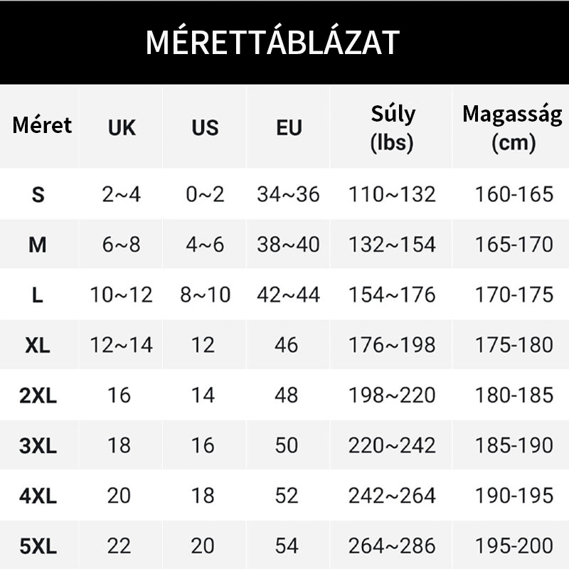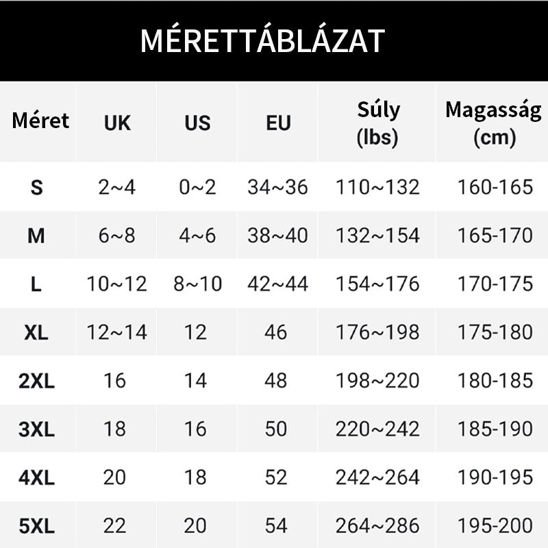 Méret: XL, 2XL, 3XL, 4XL