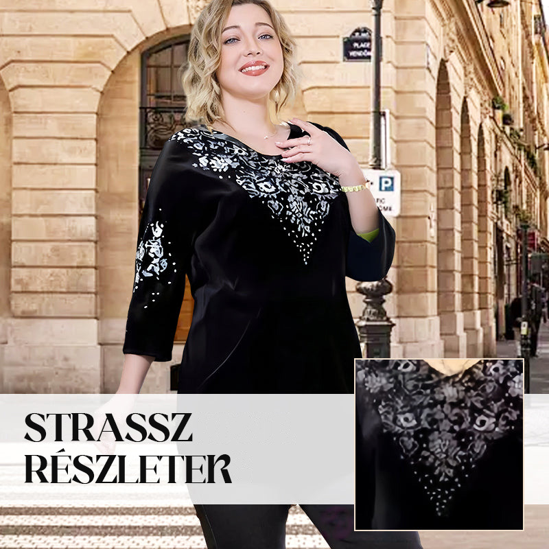 A csomag tartalma: 1ĂNĆi bĂĄrsony blĂșz kristĂĄlyokkal Ă©s nadrĂĄg szett